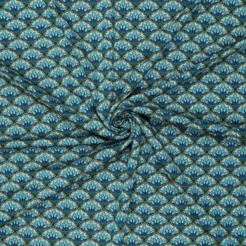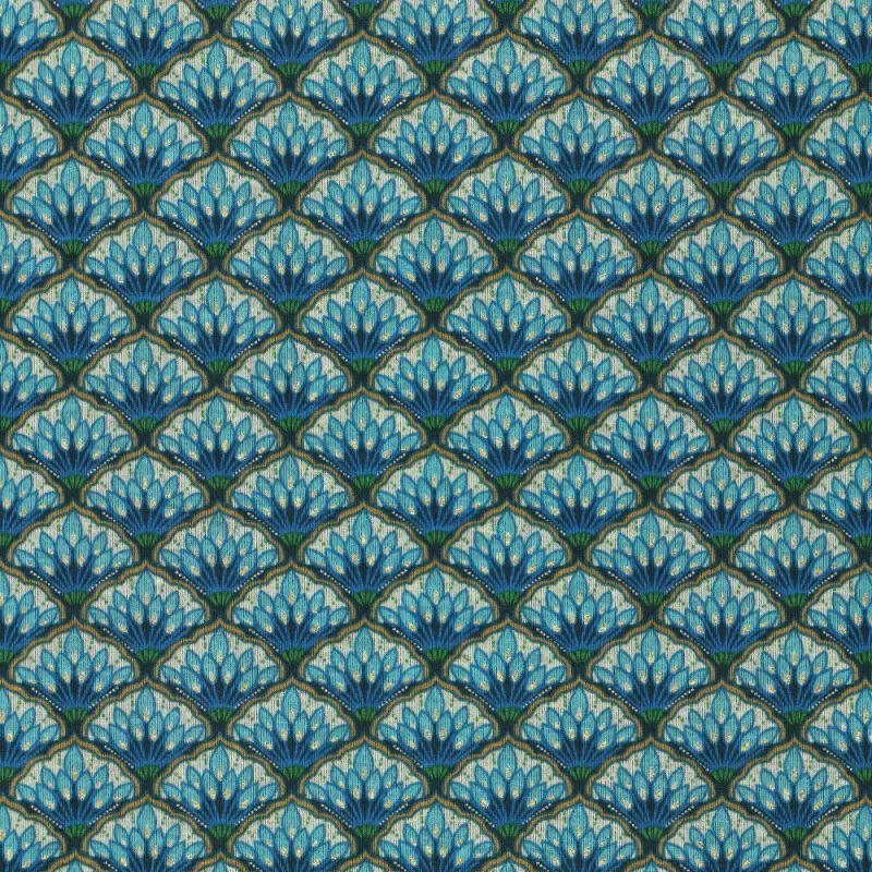 Deze stof bevat een subtiele sparkle/foil in de print. Door wrijving of intensief schuren kan dit effect in de loop van de tijd iets veranderen. Dit is een eigenschap van het materiaal en hoort bij de uitstraling van deze stof.