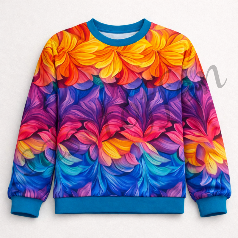 Katoen tricot abstract regenboog dessin