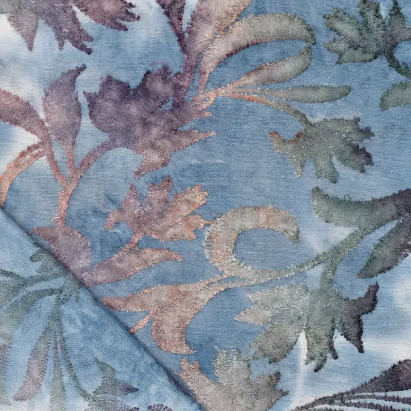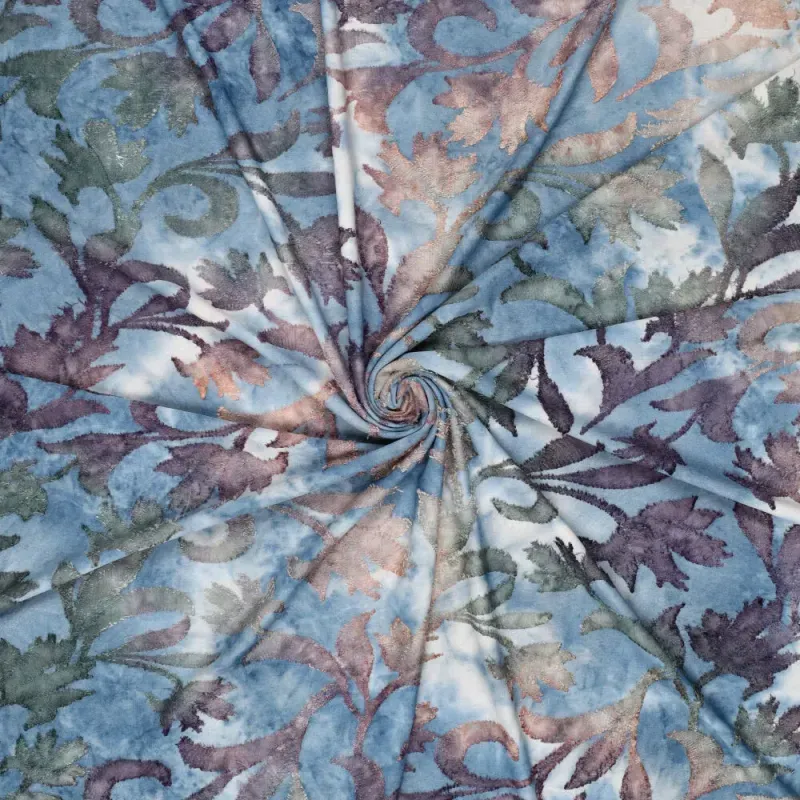 Door de burn-out techniek kunnen losse vezels voorkomen. Dit is een eigenschap van het materiaal en hoort bij dit type stof. Daarnaast is dit een echte tie dye kwaliteit: elke meter en elk verfbad is uniek, waardoor kleur en dessin per meter en per levering kunnen verschillen. Dit maakt iedere creatie uniek en geeft de stof zijn karakteristieke uitstraling.