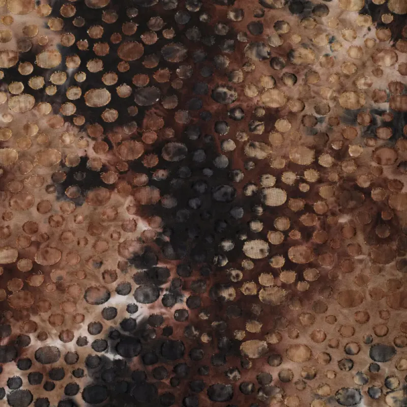 Door de burn-out techniek kunnen losse vezels voorkomen. Dit is een eigenschap van het materiaal en hoort bij dit type stof. Daarnaast is dit een echte tie dye kwaliteit: elke meter en elk verfbad is uniek, waardoor kleur en dessin per meter en per levering kunnen verschillen. Dit maakt iedere creatie uniek en geeft de stof zijn karakteristieke uitstraling.