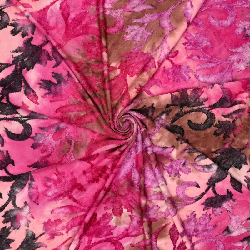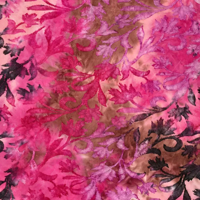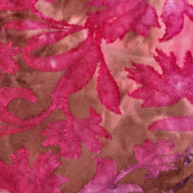 Door de burn-out techniek kunnen losse vezels voorkomen. Dit is een eigenschap van het materiaal en hoort bij dit type stof. Daarnaast is dit een echte tie dye kwaliteit: elke meter en elk verfbad is uniek, waardoor kleur en dessin per meter en per levering kunnen verschillen. Dit maakt iedere creatie uniek en geeft de stof zijn karakteristieke uitstraling.