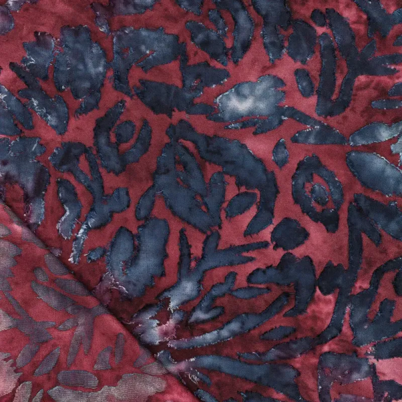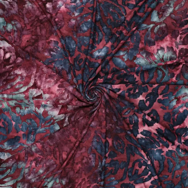Door de burn-out techniek kunnen losse vezels voorkomen. Dit is een eigenschap van het materiaal en hoort bij dit type stof. Daarnaast is dit een echte tie dye kwaliteit: elke meter en elk verfbad is uniek, waardoor kleur en dessin per meter en per levering kunnen verschillen. Dit maakt iedere creatie uniek en geeft de stof zijn karakteristieke uitstraling.
