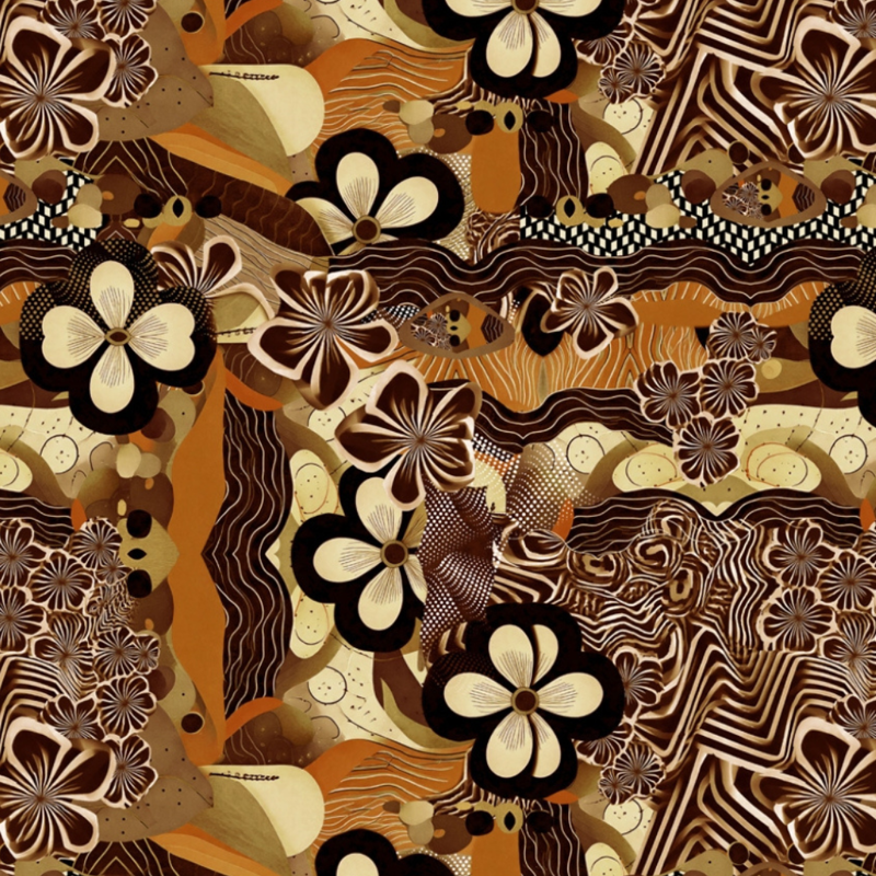 Katoen-tricot "Funky florals" bruin