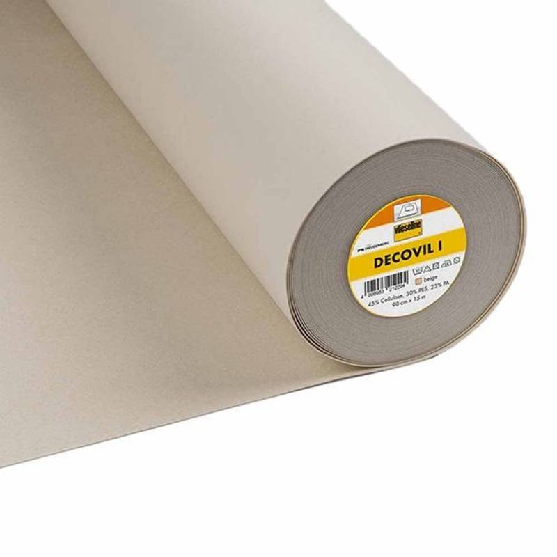 Vlieseline Decovil is gemaakt van 45% rayon, 30% thermoplastische polyester en 25% polyamide, weegt 400 gram/m2 en is verkrijgbaar in de kleur beige, in een breedte van 45cm.